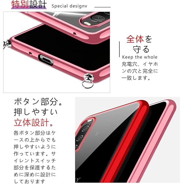 商品名:Xperia 10 II 用の ケース ショルダー クリア SO-41A SOV43 カバー スマホケース 肩掛け 首掛け 斜めかけケース 透明 TPU 薄型 耐衝撃 メッキ加工 TPUバンパー エクスペリア10マーク2(ローズゴールド)