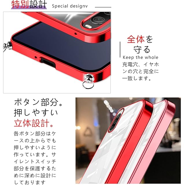 商品名:Xperia 10 V 用の ケース ショルダー クリア TPU SO-52D SOG11 カバー スマホケース 肩掛け 首掛け 斜めかけケース 透明 薄型 耐衝撃 TPU エクスペリア10v(レッド)