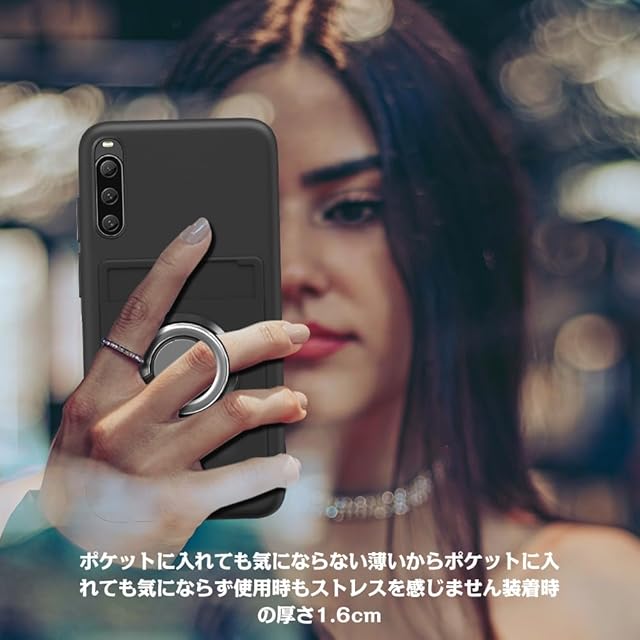 商品名:対応 Xperia 10V SO-52D ケース SOG11 リング付き シリコン カード収納 エクスペリア10V/5 ケース スタンド機能 360°回転リング 耐久 滑り止め 黑