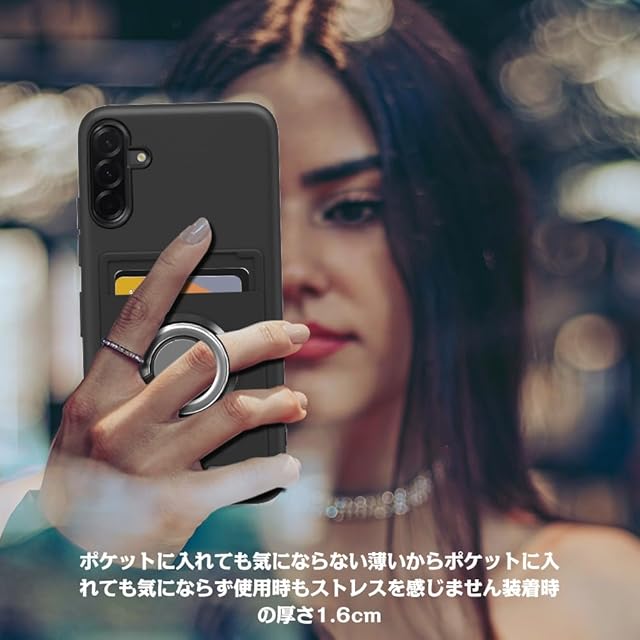 商品名:対応 Galaxy A36 5G SC-54C ケース SCG34 リング付き シリコン カード収納 ギャラクシーA36 5g スマホケース スタンド機能 360°回転リング 耐衝撃 滑り止め 黑