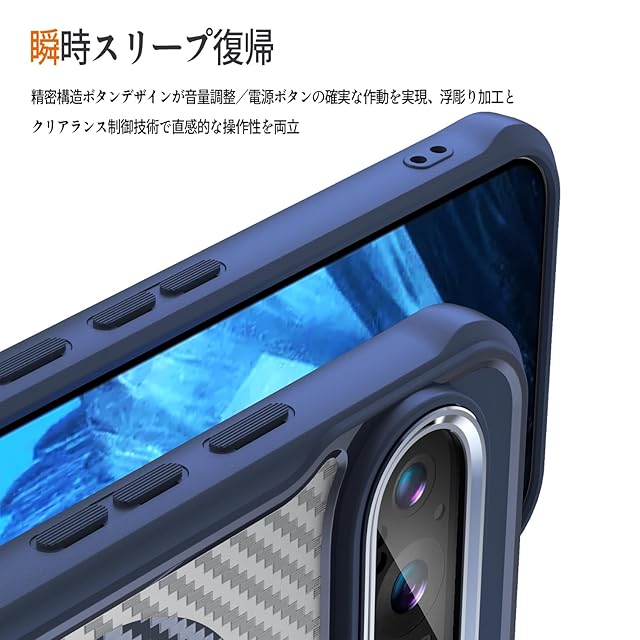 【設計】本製品は背面に高級感あふれるカーボン調テクスチャーと黄変防止コーティングを採用し、スピーカー部分に防塵設計を採用し、ホコリの侵入をブロックします。半透明バックパネルのマット質感は、Pixel本来の美しさを再現しながらも神秘感に溢れています。全カラーのPixelに調和するスタイリッシュなデザインで、ストラップホール付きで携帯性も抜群。