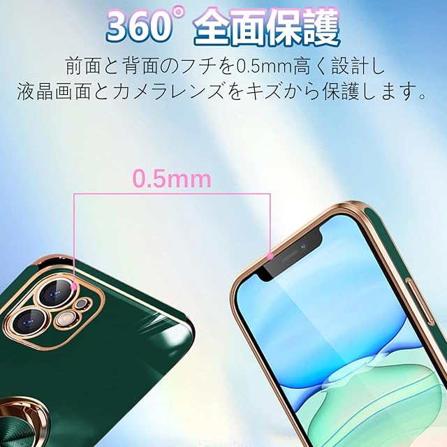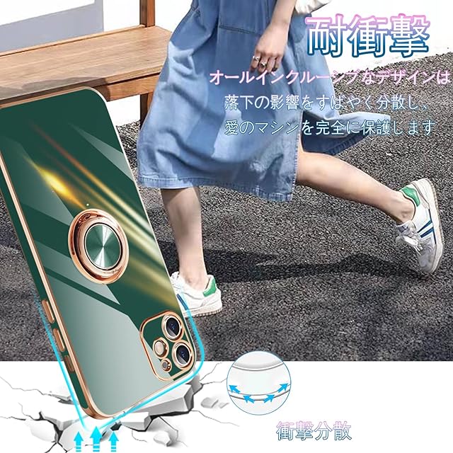 商品名:iphone12 mini ケース リング アイフォン12mini カバー リング付き 耐衝撃 携帯カバー TPU シリコン スタンド機能付き 360回転車載ホルダー 一体型レンズ保護カバー 5.4インチ(ダークグリーン)