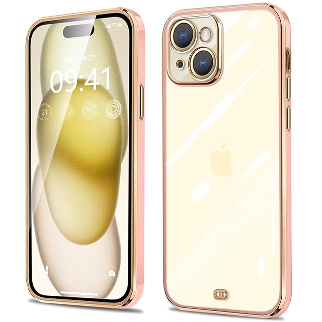 商品名:fusinong ケース 用の iPhone15 Plus クリア 透明 シリコン メッキ加工 耐衝撃 TPU 落下防止 防塵 薄型 軽量 一体型 変形防止 人気 おしゃれ 全面保護 (桜ピンク)