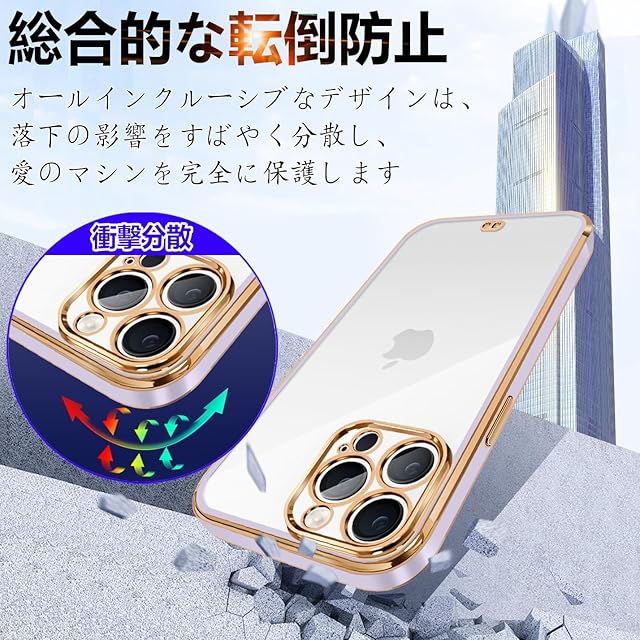iPhone15 Pro ケース クリア アイフォン15pro カバー 透明 シリコン メッキ加工 耐衝撃 TPU 落下防止 防塵 薄型 軽量 一体型 変形防止 人気 おしゃれ 全面保護 iPhone 15pro(クローブ紫)