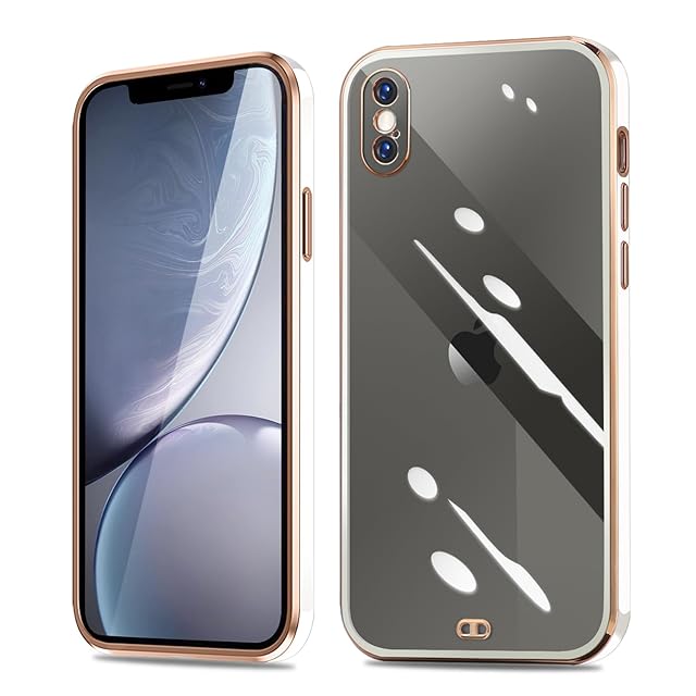 iPhone Xs Max ケース クリア アイフォンxsmax カバー 透明 シリコン メッキ加工 耐衝撃 TPU 落下防止 防塵 薄型 軽量 一体型 変形防止 人気 おしゃれ 全面保護 iPhone XsMax(ホワイト)