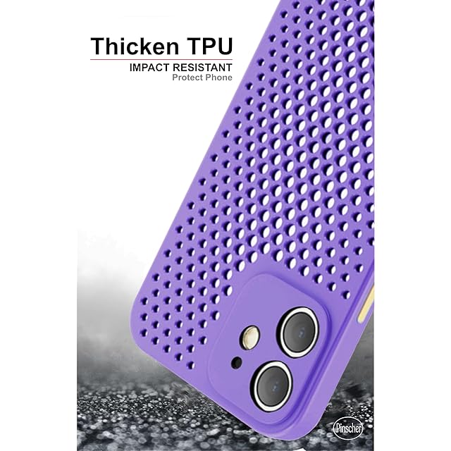 【Pinscher(ピンシャー)】 iPhone12Mini用 (パープル) 5.4インチ メッシュ ケース 放熱 アイフォン12ミニ用 ケース スマホケース カバー バンパー TPU Qi充電 耐衝撃 擦り傷防止 滑り止め 軽量 薄型 pc002-12m-pur