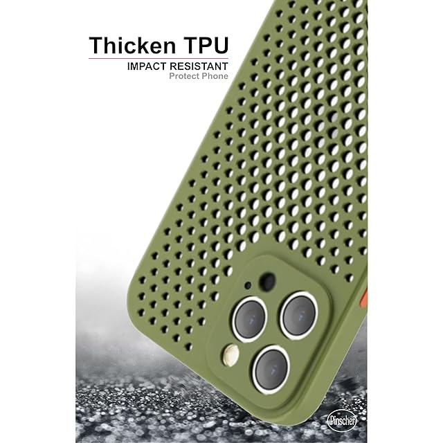 【Pinscher(ピンシャー)】 iPhone12Pro用 (グリーン) 6.1インチ メッシュ ケース 放熱 アイフォン12プロ用 ケース スマホケース カバー バンパー TPU Qi充電 耐衝撃 擦り傷防止 滑り止め 軽量 薄型 pc002-12p-g
