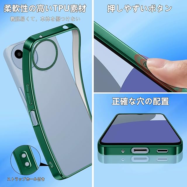 商品名:【FULEEYUHN】AQUOS wish4 ケース クリア 軽量 薄型 黄変防止 ウィッシュ4 カバー 透明 SH-52E SH-M27 対応 スマホケース 上質TPU素材 柔らかい手触 耐衝撃 レンズ保護 傷防止 落下防止 耐久性 ストラップホール付き(ダークグリーン)