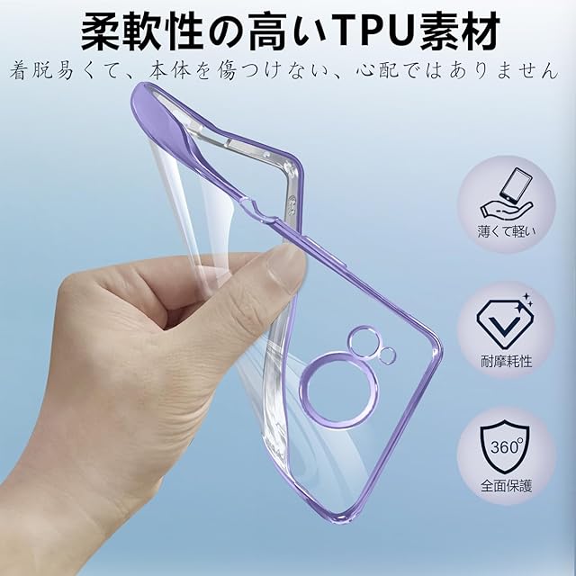商品名:【FULEEYUHN】AQUOS R8 ケース クリア 軽量 薄型 黄変防止 アクオス R8 カバー 透明 SH-52D SH-R80 対応 スマホケース 上質TPU素材 柔らかい手触[耐衝撃 レンズ保護 傷防止 落下防止 携帯便利]ストラップホール付き(パープル)