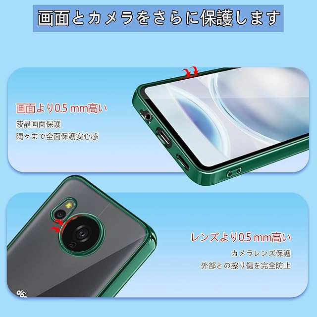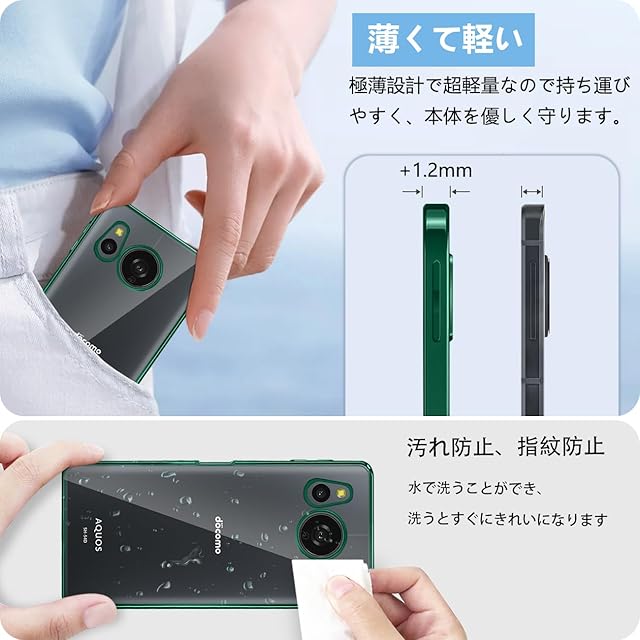 商品名:【FULEEYUHN】AQUOS Sense8 ケース クリア 軽量 薄型 黄変防止 センス8 カバー 透明 上質TPU素材 米軍MIL規格取得 SH-54D SHG11 SH-M26 対応 柔らかい手触 耐衝撃 傷防止 落下防止 携帯便利 耐久性 ストラップホール付き(ダークグリーン)