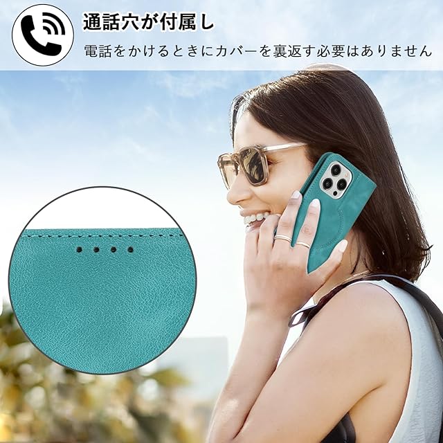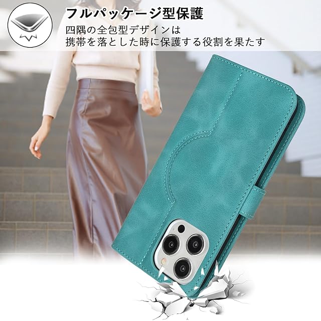 【Hamany】 対応 iPhone 14 pro max ケース Magsafe対応 アイホン14プロマックスケース 手帳型 ワイヤレス充電対応 カード収納 スタンド機能 マグネット式 スマホケース iphone 14 pro max 耐衝撃 耐久性 耐摩擦 レザー -スエードの質感ペパーミントグリーン