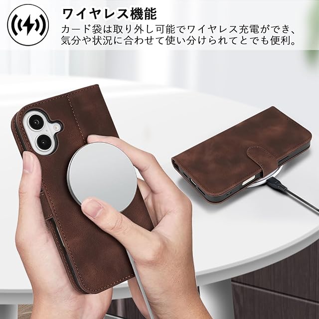 商品名:【Hamany】 対応 iPhone 16 ケース Magsafe対応 あいふおん16ケース 手帳型 ワイヤレス充電対応 カード収納 スタンド機能 マグネット式 スマホケース iphone 16 耐衝撃 耐久性 耐摩擦 アイフォン16 ケース マグネット式 レザー -スエードの質感ダークブラウン
