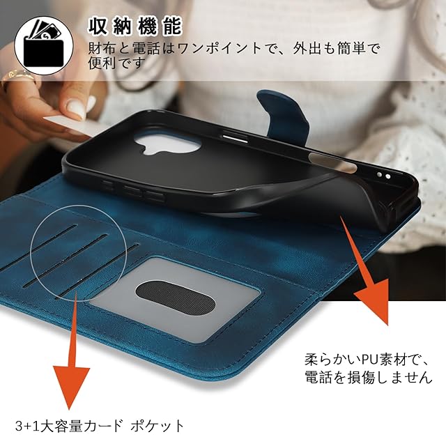 【携帯ケース対応機種】iPhone 16 対応機種と画面サイズをよくご確認のうえ、ご購入いただけますようお願い致します。他のモデルの革製ケースが必要な場合は、タイトルの横にある[Hamanyのストアを表示]をクリックしてください。 【Magsafe対応】Magsafe対応、ワイヤレス充電ができます。気分や状況に合わせて使い分けられてとでも便利。 【収納機能】ケース内側に実用性のカード入れポケット×3、内側ポケット×1。 【横置きスタンド機能】スタンド機能が付いて、横向て斜めに立てて、お好きな角度に調整することができ、映画や読書を楽しむ際に両手を解放され、とてもの便利さを持ちます。 【マグネット式】内蔵マグネットの手帳型ケースです。とてもシンプルな感じで、しかも持ち易いて、使い勝手がよいのです。 【高級皮革】閉じた状態での通話を可能。高品質のPUと柔軟なTPUカバーと組み合わせ、軽量で耐衝撃性に優れ、変形しにくくまた、取り外しが簡単で、スマホ本体への損傷の心配ありません。 ★ブランドの信頼性:このケースは、【Hamany】ブランドによって製造されており、携帯電話アクセサリーの分野で良好な評判と知名度を持っており、消費者により大きな信頼とを提供することができます。製品を安心してお使いいただくために、当店は【Hamany】製品に関するを提供します。製品に不具合がある場合、注文履歴画面より出品者にご連絡いただき、お問い合わせ内容に応じて、交換などの対応が可能です。