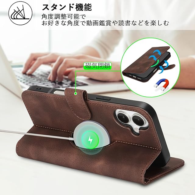 商品名:【Hamany】 対応 iPhone 16 plus ケース Magsafe対応 あいふおん16プラスケース 手帳型 ワイヤレス充電対応 カード収納 スタンド機能 マグネット式 アイフォン16プラス ケース 耐衝撃 耐久性 耐摩擦 マグネット式 レザー -スエードの質感ダークブラウン
