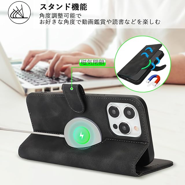 商品名:【Hamany】 対応 iPhone 16 pro max ケース Magsafe対応 あいふおん16ケースプロマックス 手帳型 ワイヤレス充電対応 カード収納 スタンド機能 マグネット式 いphone16 pro max ケース 耐衝撃 耐久性 耐摩擦 レザー -スエードの質感ブラック