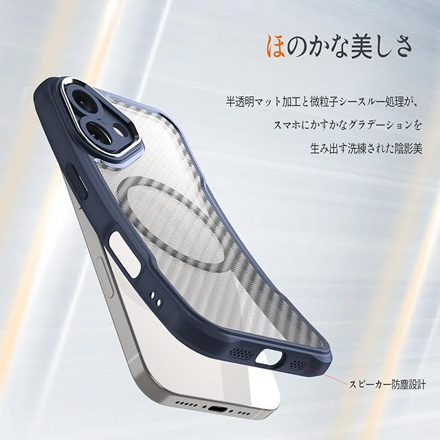商品名:Panda Baby iPhone 17 用 ケース MagSafe対応 半透明 マット質感 指紋防止 耐衝撃バンパー マグネット搭載 レンズ全面保護 「おしゃれなカーボン調」 (ブルー)