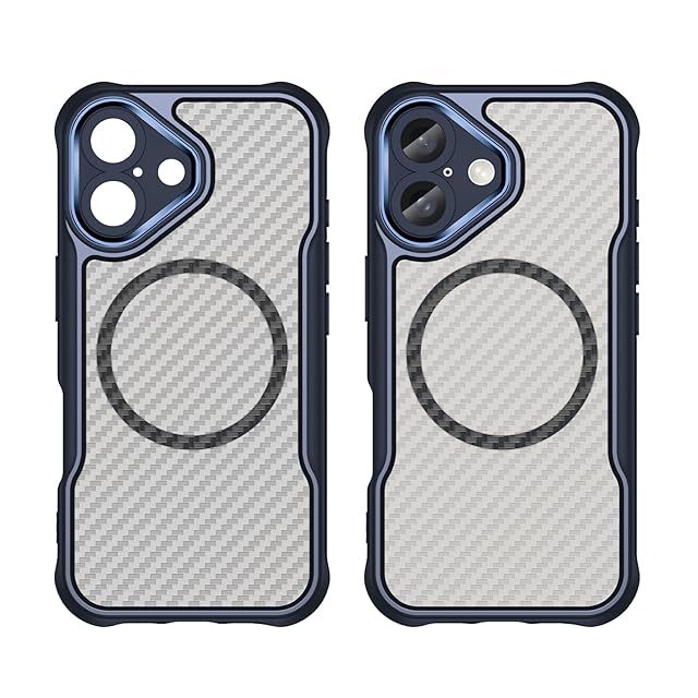 Panda Baby iPhone 17 用 ケース MagSafe対応 半透明 マット質感 指紋防止 耐衝撃バンパー マグネット搭載 レンズ全面保護 「おしゃれなカーボン調」 (ブルー)