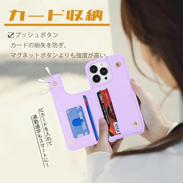 商品名:Havaya スマホショルダー iPhone 14 Pro ケース iphone14 proケース スマホケース iphone 14プロ ショルダー リング付き レザー 肩掛け カード収納(アイフォン14pro/アイホン14プロ/アイフォン14プロ/あいふぉん14pro 通用 6.1インチ対応)-パープル