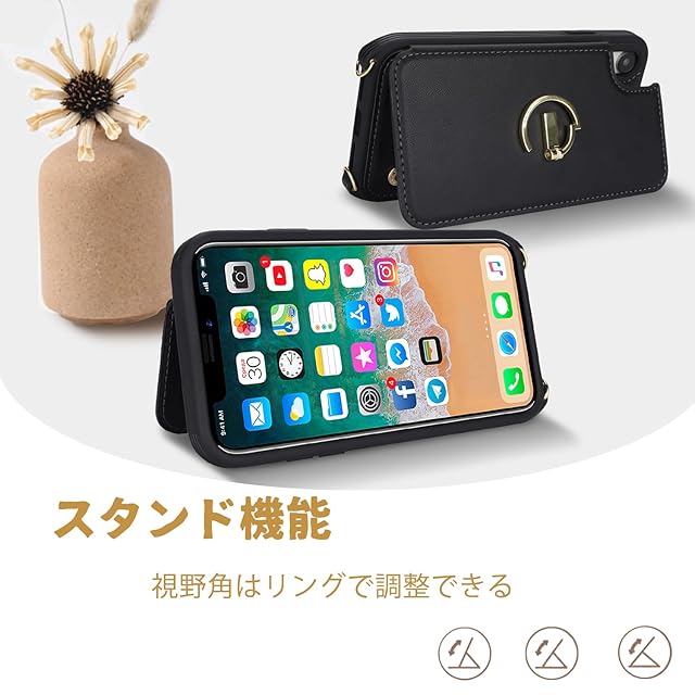 商品名:Havaya スマホショルダー iPhone xr ケース iphonexr ケース スマホケースiphone10R ショルダー リング付き レザー 肩掛け カード収納(アイフォン XR/あいふぉんxr/いphone xr/アイホン10r 6.1インチ対応)-ブラック