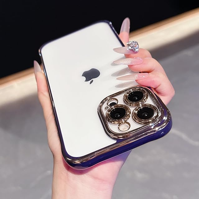 ZTOFERA for iPhone 15 ケース、クリスタルクリアアクリルバック、ソフトメッキエッジ、取り外し可能な電話レンズ、スリム透明バンパーケース for iPhone 15 濃い紫