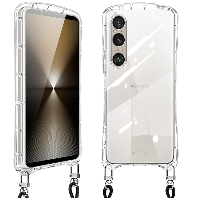 Xperia 1 V 用の ケース クリア ショルダー カバー xperia1v SO-51D SOG10 スマホケース 全透明 磁気充電 耐衝撃 肩掛け 首掛け 斜めかけケース 可愛い かわいい 韓国 TPU 長さ調整可能 取り外し可能(クリア)