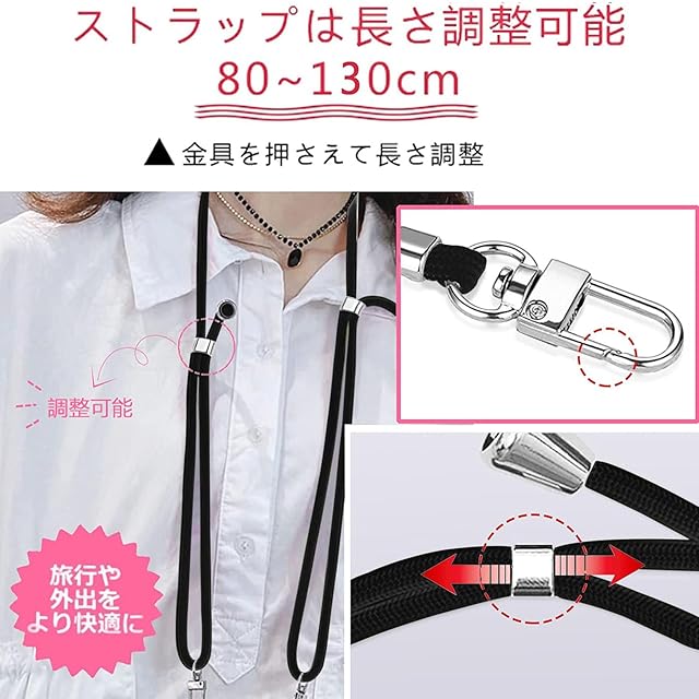 【長さ調整可能・使いやすさ】柔らかいナイロンストラップで首を快適に保ち、ストレッチの長さを調整でき、ストラップを取り外して、電話ケースを単独で使用できます。