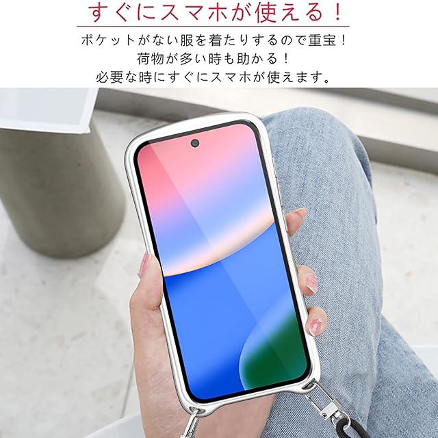 【ネックレスケース】シリコンケースには首から下げられるようにショルダーストラップが付いており、まるでアクセサリーのようにスマホを着用できます。落下防止はもちろん、紛失防止にも役立ちます。 特に旅行や、小さなお子様がいるお母さんにおすすめ、手荷物がある時にスマホを持ち続ける必要がなくなりますし、スマホを落としたり無くしたりといった心配もなくなります、バッグから携帯を取り出す手間がはぶけます。