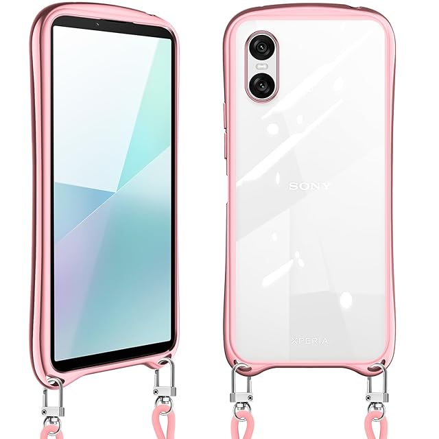 Xperia 10 VI 用の ケース ショルダー クリア xperia10vi SO-52E SOG14 スマホケース カバー 耐衝撃 肩掛け 首掛け 斜めかけケース 可愛い かわいい 韓国 透明 TPU 長さ調整可能 取り外し可能(ローズゴールド)