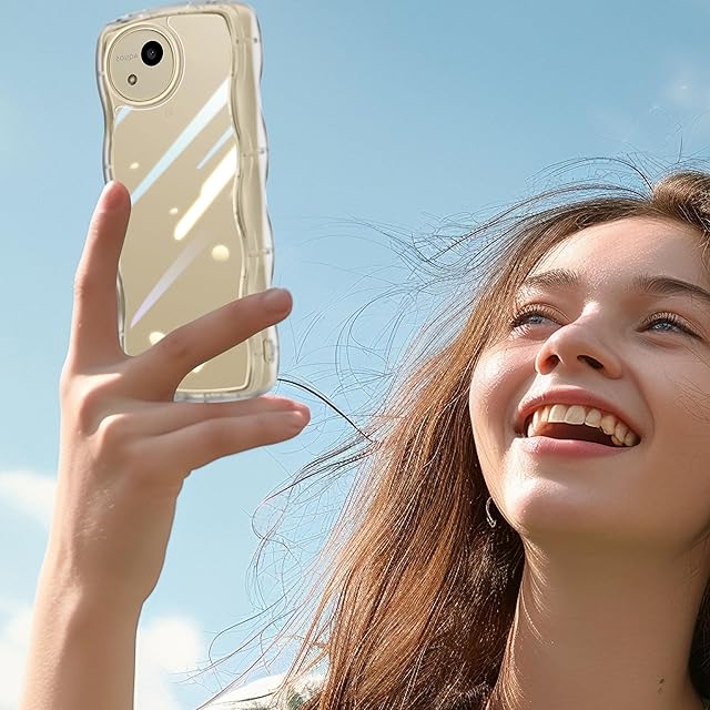 Samsung Galaxy A23 5G ケース クリア 波状フレーム グーグル ギャラクシー A23 カバー うねうね 耐衝撃 女性用 女子向け 人気 スマホケース 薄型 軽量 透明 TPU ワイヤレス充電対応 ストラップホール付 (ピンク)