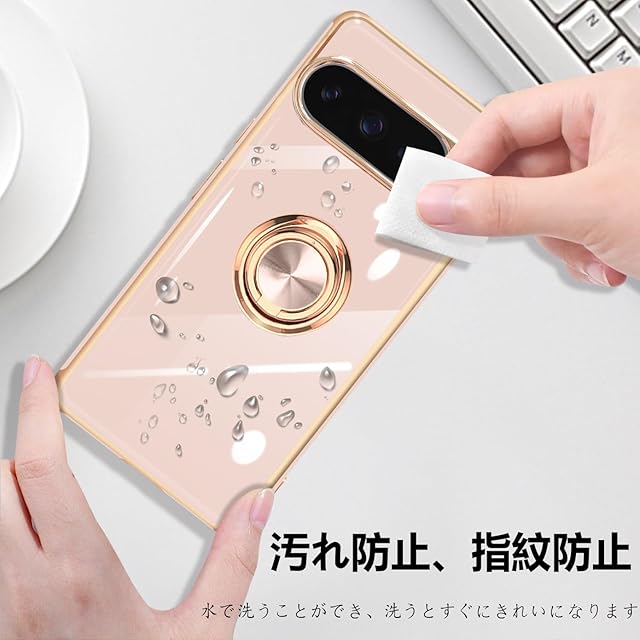 商品名:Google Pixel9 Pro XL ケース リング付き グーグル ピクセル 9ProXL リング カバー 耐衝撃 TPU メッキ加工 360°回転 スタンド機能 車載ホルダー ストラップホール付き(ピンク)