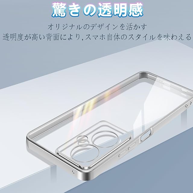 商品名:OPPO A79 5G ケース クリア 耐衝撃 軽量 スマホケース 超薄型 TPU ストラップホール付き メッキ加工 透明 ソフト 衝撃吸収 (シルバー)