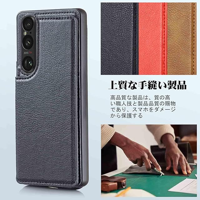 【上質素材】:耐久性のあるTPUと柔軟性のある上質レザーを採用されて、傷やカジリを防ぐことが出来ます。また、指紋、油分などもつきにくく、カメラレンズ保護構造でスマホ本体を傷から360度しっかり保護してくれます。