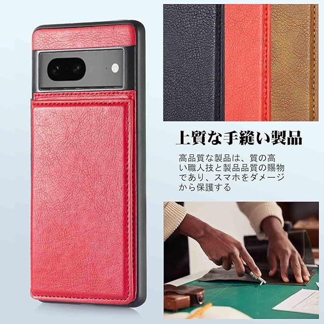 商品名:【Aqier】For Pixel 7 au Softbank ケース 背面手帳型 軽い薄い 純色 レザーケース(レッド)グーグル ピクセル7 ケースカード入れ 片手操作 バックカバー ソフトバンクpixel7 赤色