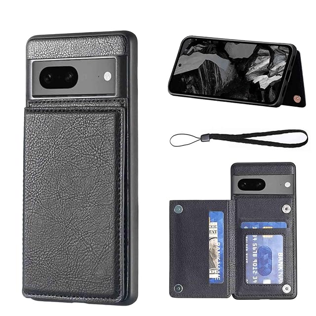 【Aqier】For Pixel 8A 用 ケース 背面手帳型 軽い薄い 純色 レザーケース (ブラック) グーグル ピクセル8a ケースカード入れ 片手操作 バックカバー グーグルpixel8a 黒