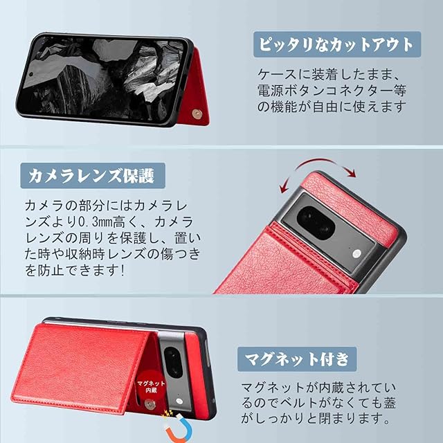 商品名:【Aqier】For Pixel 8A 用 ケース 背面手帳型 軽い薄い 純色 レザーケース (レッド) グーグル ピクセル8a ケースカード入れ 片手操作 バックカバー グーグルpixel8a 赤色