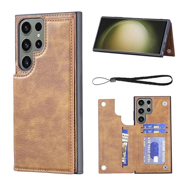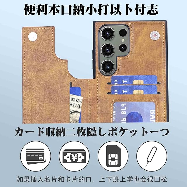 商品名:【Aqier】For Galaxy S24 Ultra/docomo SC-52E / au SCG26 ケース 背面手帳型 軽い薄い 純色 レザーケース(レトロブラウン)サムスンscg26 ギャラクシー S24ウルトラ ドコモsc52e ケースカード入れ 片手操作 バックカバー サムスンS24u 薄い茶