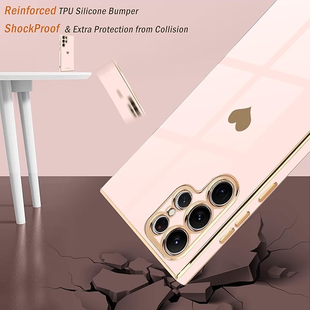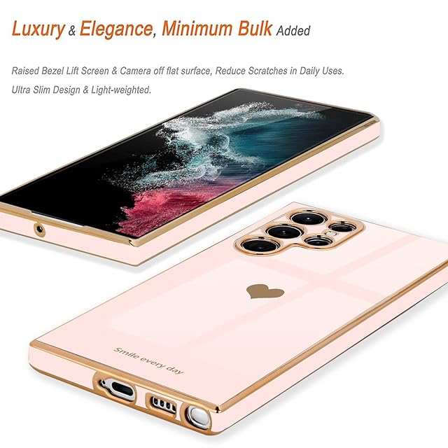 商品名:Teageo 適用 Samsung Galaxy S22 Ultra ケース対応 少女の 可愛い 愛心の形 メッキ加工保護ケース 薄型 TPU ワイヤレス充電対応 傷に強い 耐衝撃 落下防止 電話カバー Samsung Galaxy S22 Ultra 用 スマホケース(ライトピンク)