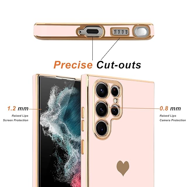 Teageo 適用 Samsung Galaxy S22 Ultra ケース対応 少女の 可愛い 愛心の形 メッキ加工保護ケース 薄型 TPU ワイヤレス充電対応 傷に強い 耐衝撃 落下防止 電話カバー Samsung Galaxy S22 Ultra 用 スマホケース(ライトピンク)