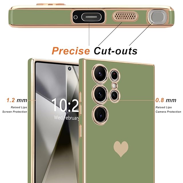 Teageo 適用 Samsung Galaxy S24 Ultra ケース対応 少女の 可愛い 愛心の形 メッキ加工保護ケース 薄型 TPU ワイヤレス充電対応 傷に強い 耐衝撃 落下防止 電話カバー Samsung Galaxy S24 Ultra 用 スマホケース(ライトグリーン)