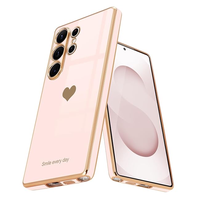 商品名:Teageo 適用 Samsung Galaxy S25 Ultra ケース対応 少女の 可愛い 愛心の形 メッキ加工保護ケース 薄型 TPU ワイヤレス充電対応 傷に強い 耐衝撃 落下防止 電話カバー Samsung Galaxy S25 Ultra 用 スマホケース(ライトピンク)