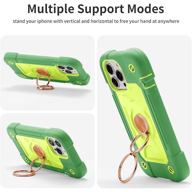商品名:iPhone 13 Pro Max ケース 耐衝撃 頑丈 360度回転スタンド リング付き付き 虹色 かわいい アイフォン13 プロ マックス ケース 車載ホルダー対応 落下防止 ストラップホール付き アウトドア 子供 仕事用 (iPhone 13 Pro Max, 翡翠緑)