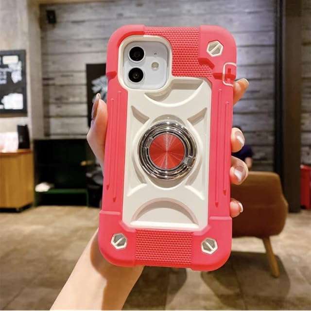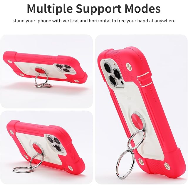 商品名:iPhone 14 Plus ケース 耐衝撃 頑丈 360度回転スタンド リング付き付き 虹色 かわいい アイフォン 14 プラス ケース 車載ホルダー対応 落下防止 ストラップホール付き アウトドア 子供 仕事用 (iPhone 14 Plus, ローズレッド)