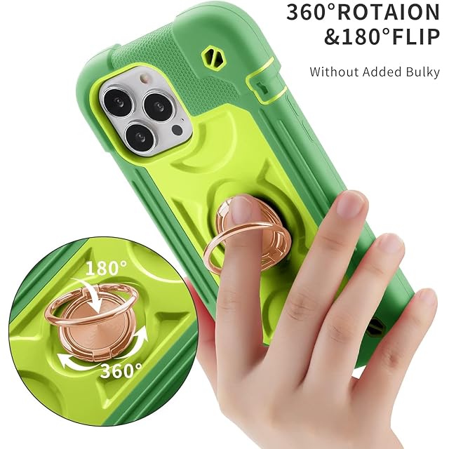iPhone 14 / iPhone 13 用 ケース 耐衝撃 頑丈 360度回転スタンド リング付き付き 虹色 かわいい アイフォン14 ケース 車載ホルダー対応 落下防止 ストラップホール付き アウトドア 子供 仕事用 あいふぉん 13 アイフォン 14 (6.1インチ) 対応 (iPhone 14 / iPhone 13, 翡翠緑)