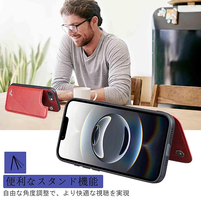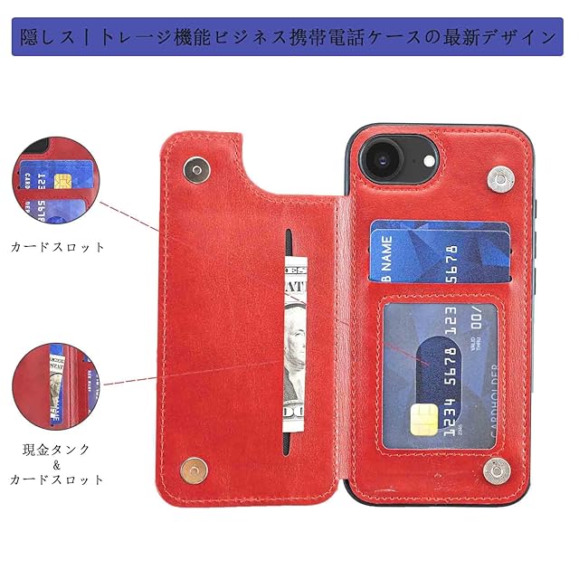 商品名:【Aqier】カバー 用 iPhone 16E 6.1 inch ケースカード (レッド)アイフォン16e 6.1インチ スマホケース 背面カード 収納 軽量 多機能 ケース 手帳型 あいほん16e RED