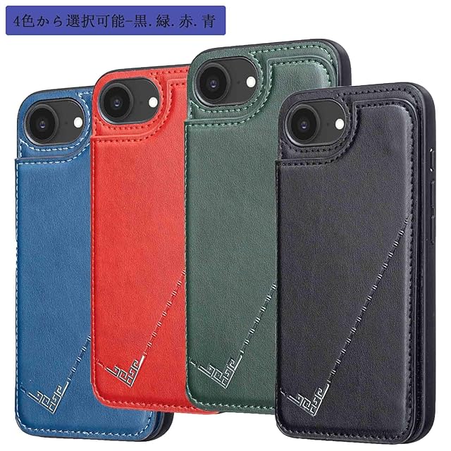 【Aqier】カバー 用 iPhone 16E 6.1 inch ケースカード (レッド)アイフォン16e 6.1インチ スマホケース 背面カード 収納 軽量 多機能 ケース 手帳型 あいほん16e RED