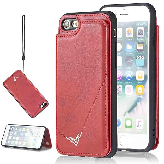 【Aqier】カバー 用 iPhone SE (2020) / SE2 (第2世代) / iphone8 / iphone7 ケースカード (レッド) アップル アイフォse/se2/8/7 スマホケース 背面カード 収納 軽量 多機能 ケース 手帳型 iphone7g RED