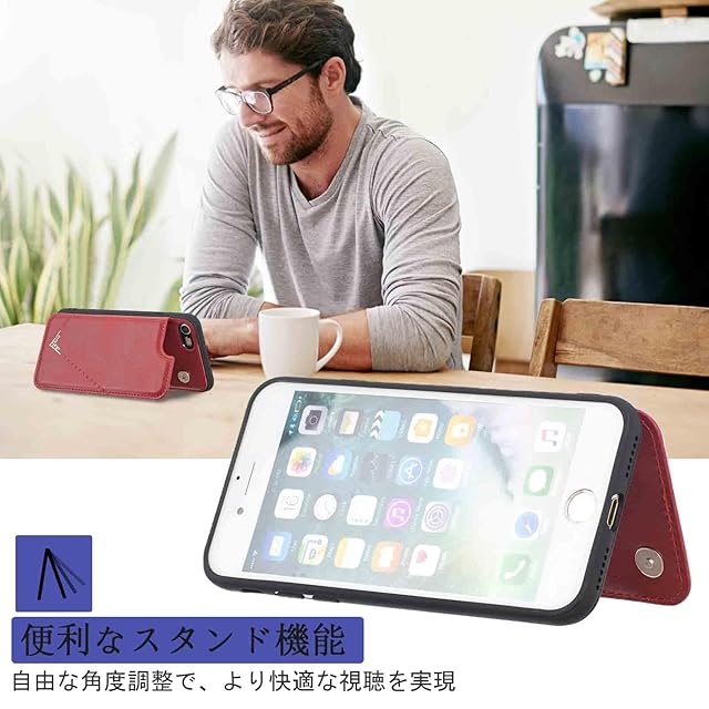 商品名:【Aqier】カバー 用 iPhone SE (2020) / SE2 (第2世代) / iphone8 / iphone7 ケースカード (レッド) アップル アイフォse/se2/8/7 スマホケース 背面カード 収納 軽量 多機能 ケース 手帳型 iphone7g RED