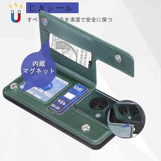 商品名:【Aqier】カバー 用 Reno 11A 5G/Reno 11F 5G ケースカード(ダルグリーン)オッポ リノ11a リノ11f 5g スマホケース 背面カード 収納 軽量 多機能 ケース 手帳型 オッポ reno11f GREEN