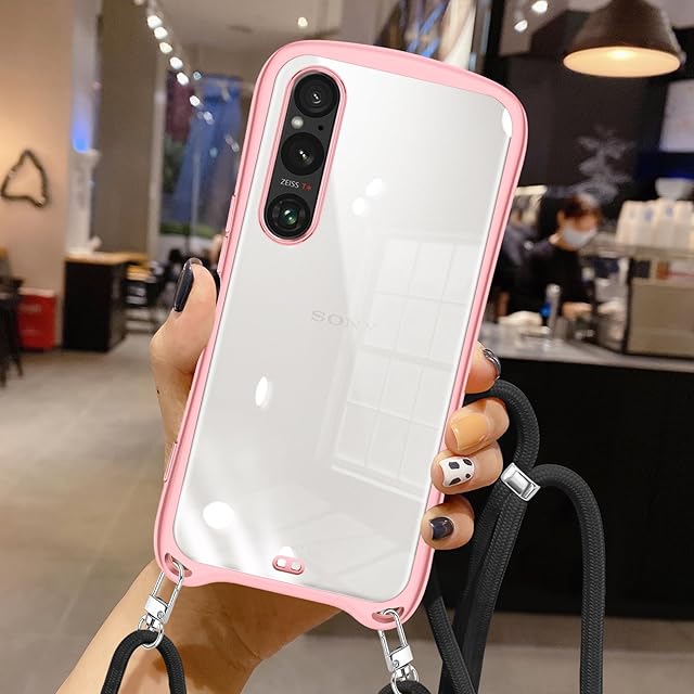 商品名:Xperia 1 V 用の ケース ショルダー クリア xperia1v SO-51D SOG10 カバー スマホケース 耐衝撃 肩掛け 首掛け 斜めかけケース 可愛い かわいい 韓国 透明 TPU メッキ加工 TPUバンパー 長さ調整可能 取り外し可能(ローズゴールド)