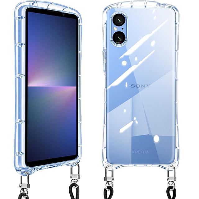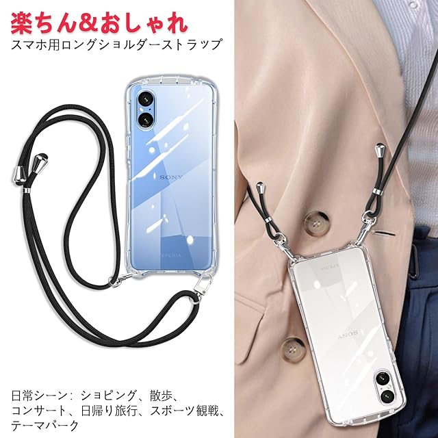 Xperia 5 V 用の ケース ショルダー クリア SO-53D SOG12 xperia5v スマホケース 全透明 カバー 耐衝撃 肩掛け 首掛け 斜めかけケース 可愛い かわいい 韓国 TPU TPUバンパー 長さ調整可能 取り外し可能(クリア)